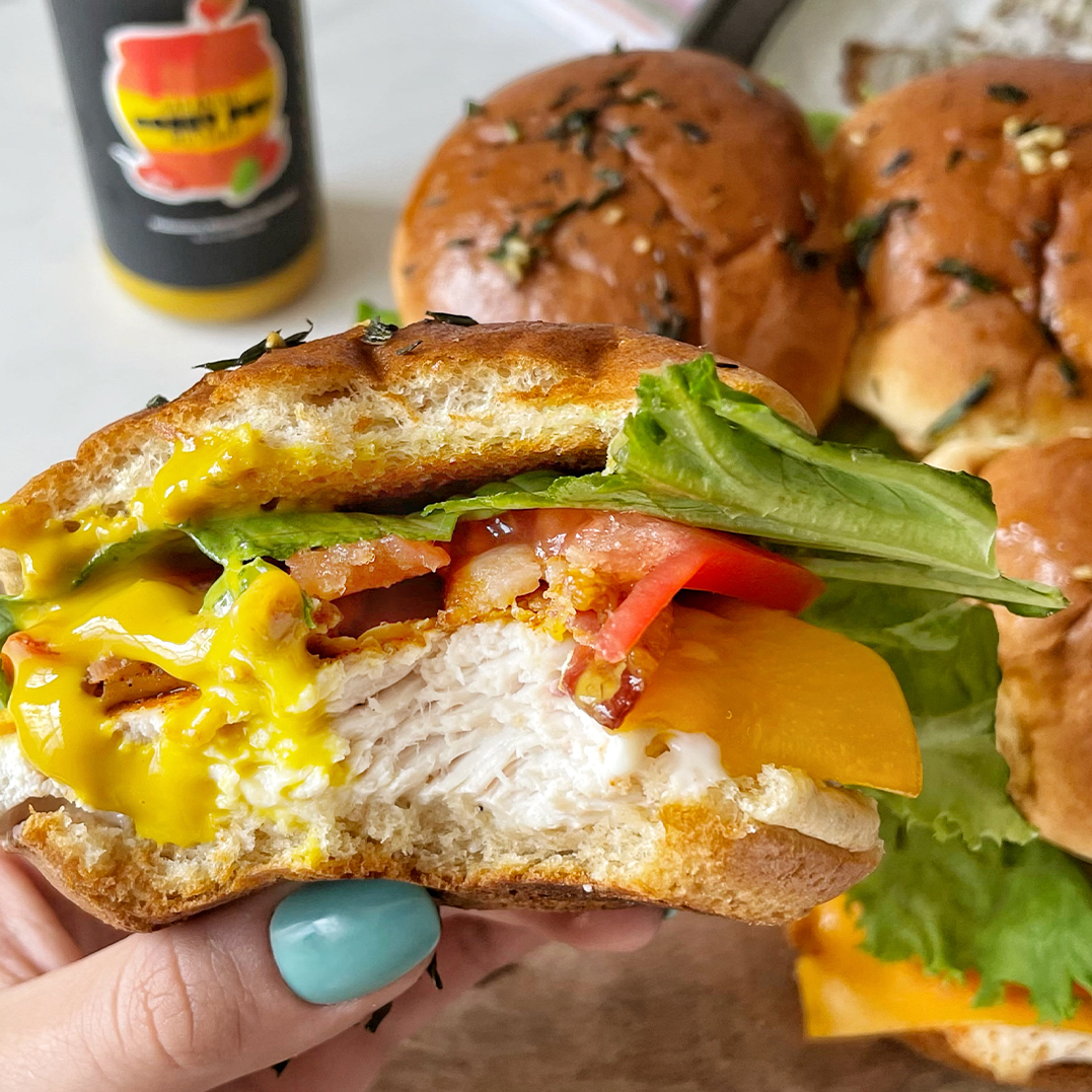 These mini delights feature seasoned chicken breasts, crispy bacon, and a drizzle of Habanero Honey Pot Mustard, all nestled in toasted buns. Sweet, savory, and utterly delicious!