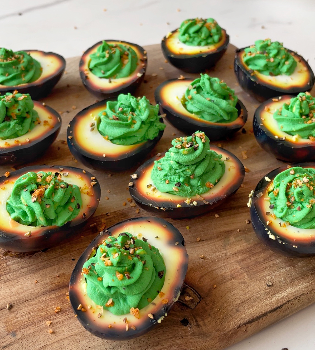 Add a touch of Halloween magic to your table with Zesti's Deliciously Rotten Deviled Eggs. These eerie yet elegant treats feature perfectly boiled eggs, a hint of Windy City sauce, and a sprinkle of Egg enlightenment. Embrace the spooky flavor today!