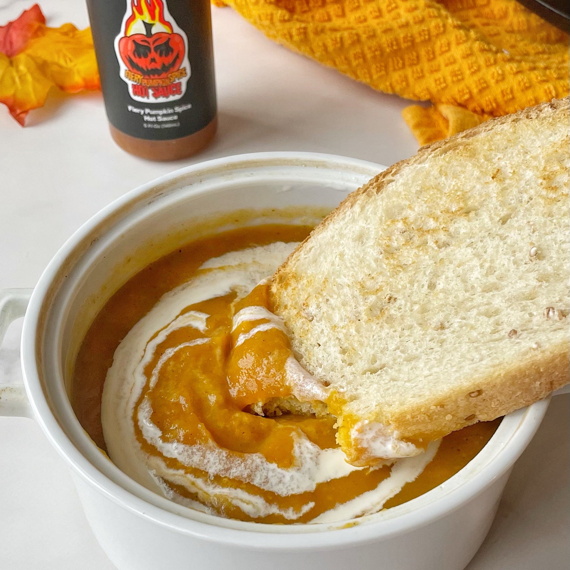Cozy up with Zesti's Fiery Pumpkin Soup. This comforting bowl is infused with the rich flavors of pumpkin, fresh thyme, and our Fiery Pumpkin Spice hot sauce. The optional touch of cream adds a velvety finish, making it a delightful way to savor the season.