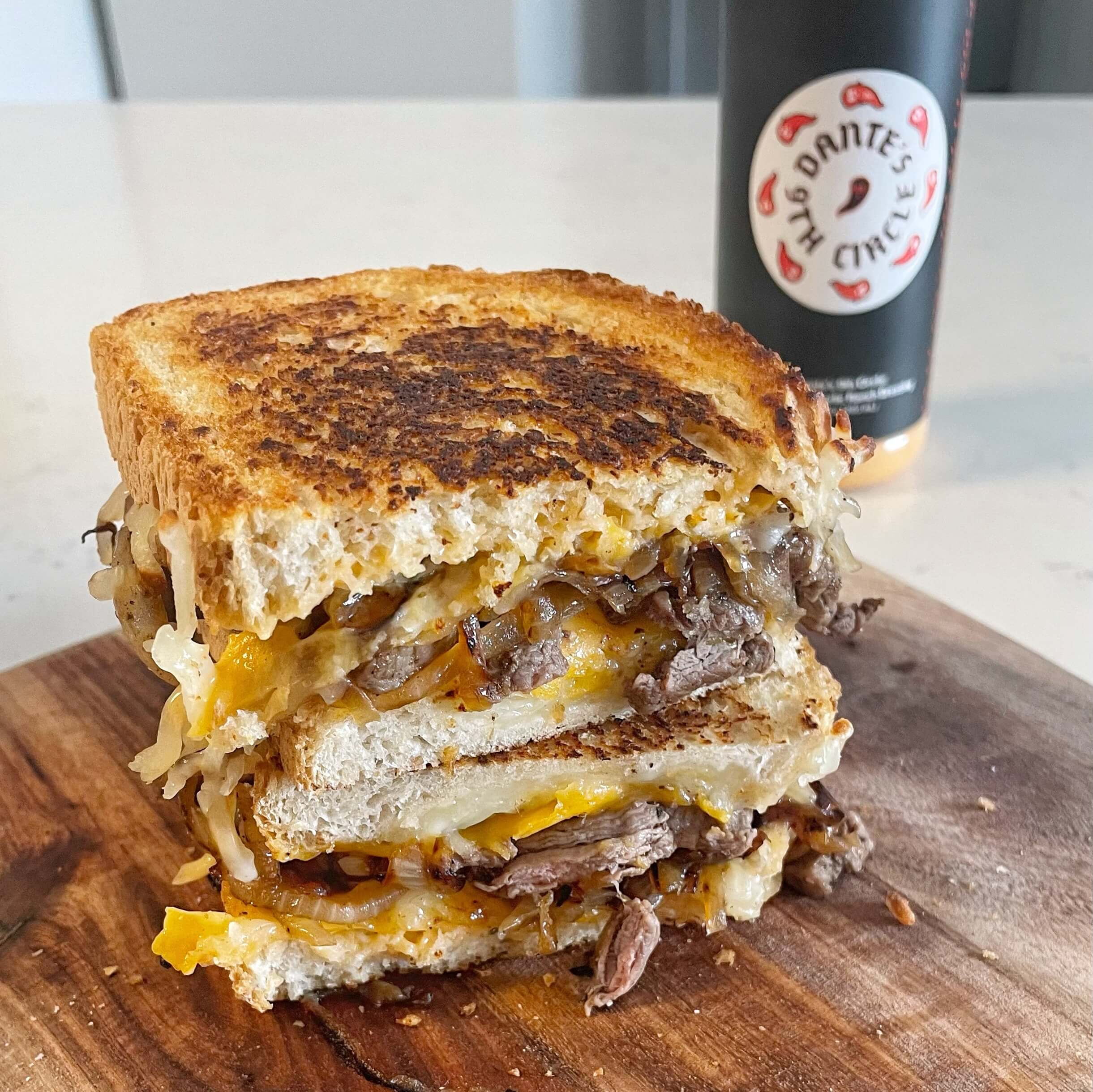Indulge in our Devilishly Delicious Steak n' Cheese from Hell! Packed with savory steak, caramelized onions, and a kick straight to the mouth from of Dante’s 9th Circle, this sandwich will take your taste buds on a trip to hell and back. Gluttony never tasted so good.