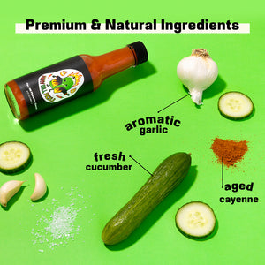 The next time you’re in a flavor pickle, break out a bottle of Fiery Dill Pickle. Made with fresh cucumbers, minced garlic, barrel-aged cayenne peppers, and a secret blend of spices, our dill pickle hot sauce is a tangy, subtly spicy blend that pickle lovers have been dreaming of.