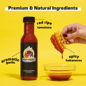 Someone left this ketchup in the smokehouse overnight. Made with ripe red tomatoes, freshly mashed habanero and cayenne peppers, aged garlic, diced onion, lime, and enough smoke to block out the sun, our Smoky Habanero Garlic Ketchup was crafted for those who appreciate a ketchup with layer upon layer of unforgettable flavor.